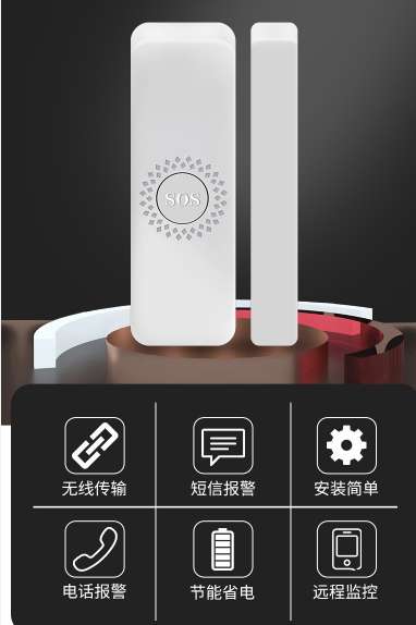 门/窗被打开时(门磁与磁条分离超过1cm以上)会打电话发短信,提醒用户门被打开