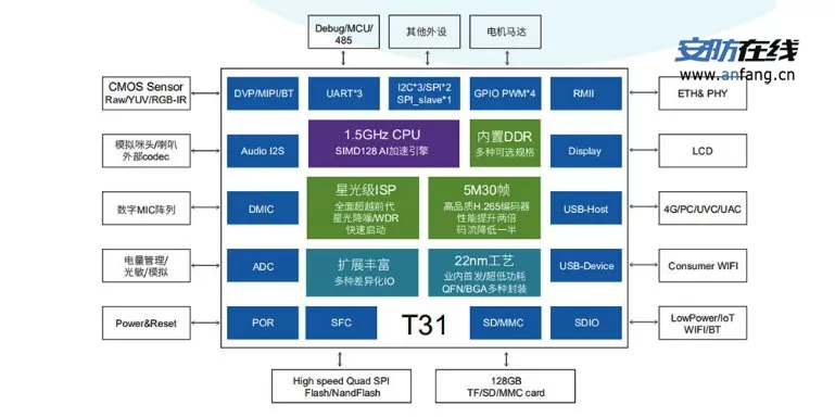 低功耗,蓝牙5.1,H.264/H.265,500万像素,4G;