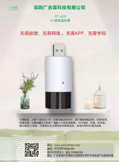 该产品无需联网,无需下载手机APP,无需对着设备学码,更不需要智能音箱,即插即用,简捷方便;