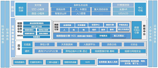 智慧型平安城市解决方案采用下图所示的逻辑架构进行设计,分为感知层、后台、中台、前台。