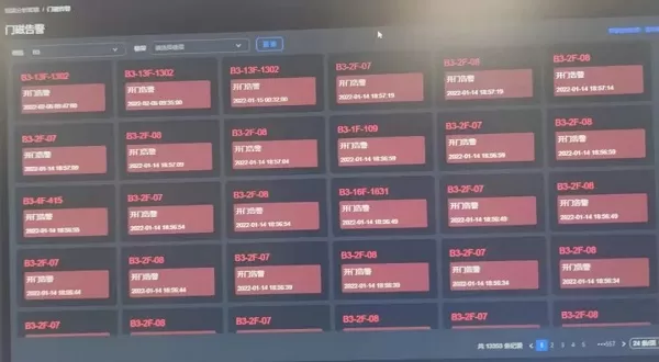 达实门禁系统与公安系统进行对接,酒店门锁每开启一次,门禁系统便会第一时间将警报信息上传至云平台,并显示在列表最前端。隔离酒店值班室民警收到报警信息后,可通过视频监控设备远程掌握报警区域实时信息,必要时可利用对讲通知楼层值班人员前往处理。