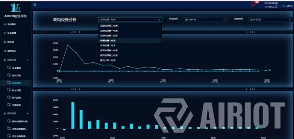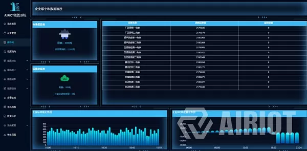 AIRIOT智慧能源管理解决方案基于AIRIOT物联网平台搭建,一个平台接入所有能源管理和数据监测设备,通过3D模型直观展现整个能源管理区域的形态样貌,并通过用能曲线、同期环比、用能排行、能源列表等可视化图表,全面展示能源管理的关键指标。