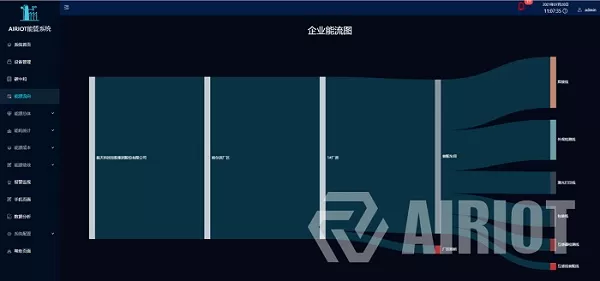 系统根据企业能源消耗情况,以资产、部门、设备为用能单位,全面展示企业能源走向,从用能总量,到分支用能,逐级展示能流图标,使企业全面了解各个生产环节能耗占比。