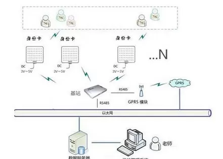 远距离主动识别方式(主要是2.4-2.48G频段),是目前应用最成功,最受各地学校欢迎的一种识别方式。这种识别方式不仅距离极远,可以在50米的范围内轻松读取(空气中能够稳定80米读取),还能支持多达200个射频卡的同时读取,最重要的是能够克服人体、书包等遮挡,甚至上百个学生一起进出依然保证100%的读取。