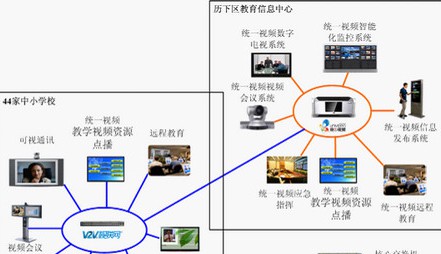 univideoTM统一视频教育信息化平台可以将多个分校互通互联,实现资源共享,统一管理,并且V2V视联网技术与univideoTM统一视频服务平台很好的解决了多种视频业务跨地域的,全高清的进行视频通信传输。univideoTM统一视频服务平台具有强大的兼容性,不仅仅可以兼容市场主流品牌的视频会议系统、监控系统,还可以在同一平台上实现智能化教学管理、智能化的视频会议、智能化播控的信息发布、智能化视音频监控系统等一系列功能。提高了多家互联学校的数字化、科技化与资源共享化程度。