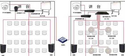 异地端侧重于学员的互动问答全双工传递。由于各教室规格范围不同根据具体作用范围,进行合理化的拾音器布排,进而达到教室端全方位无死角的声源采集。