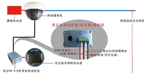 传统的音视频监控传输无非是采用同轴线缆,远距离传输使用屏蔽线缆或者光端机。而前端使用网络摄像机的可以将拾音器接入网络摄像机转成数字信号通过网线接入交换机利用网络传输至后端。使用网络摄像机时必须注意,网络摄像机必须带有音频输入(linein输入)。市面上有不少网络摄像机是带micin输入的,拾音器严禁接入micin。