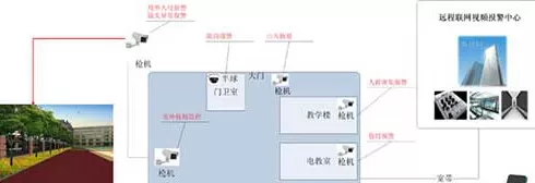 1、周界:围墙周界作为校园安全的第一道防线,在阻挡外人确保校园安全的同时,还可以防止学生翻越围墙进出校园。在周界启用区域入侵报警功能,当有人进入警戒区域时,系统自动报警,同时可联动现场的警灯警号、音箱、射灯等设备,对进入警戒区域的人员进行阻吓和驱离。