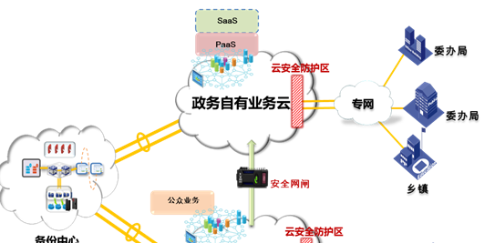 ・ 云安全接入:遵循全省政务外网的VPN划分,保证各厅局委办的网络接入安全。