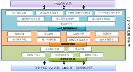 一体化指挥通信服务平台是一个融合式的应急通信保障平台,能集成整合多种通信网络资源,提供各种指挥通信手段,在公安遂行维稳处突、重大灾害救助和大型活动安全保卫等应急指挥调度任务时,能够满足多警种、跨部门的指挥员、支援人员和现场处置人员及各种公安信息化装备的通信需求及协同交互需求,可确保应急处置合理有序、反应灵敏,从而有效提升公安机关执行能力。