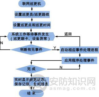监狱在线巡更管理系统主要用于安全巡逻和巡检工作的记录考核。由在线巡逻管理系统、IP网络巡更控制器、阅读器(智能卡读卡器、指纹识别器)和身份卡或生物信息构成。其基本的原理就是在巡逻线路上安装一系列代表不同点的IP网络巡更控制器,联入管理区内安防局域网与管理软件进行数据交流,巡逻人员巡逻到各点时在控制器的外接阅读器上刷身份卡或按指纹,通过网络将刷卡的地点、人员、时间信息迅速传给监控中心,就可以对巡逻情况进行实时监控。
