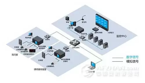 同时系统按照功能分区,又可分为询问室、接待室和监控中心,设备布置如下: