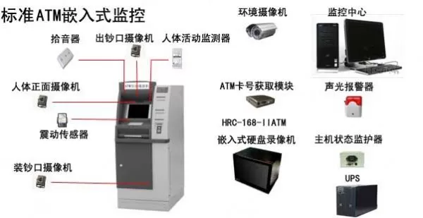 由于无人值守自助银行内主要是ATM提款机,而ATM机本身结构的特殊性和使用环境以及机器型号的多样性,给无人值守自助银行监控设备的选型和安装提出了特殊的要求。而应用环境,监控对象,外部接口等区别,ATM监控主机(HRC-168)有着多方面的功能特性,同时,我们需要相应的特殊技术来实现这些特殊功能。