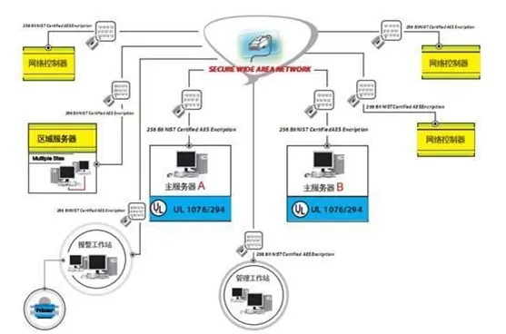 针对门禁数据的存储与备份,新一代的门禁系统要求做到多数据库同步备份异地存储,当主服务器无法正常工作时,需要有多个备用服务器可以接管工作,同时备用服务器需要与主服务器数据同步并且异地,最大可能达到数据安全以及门禁系统的可靠性。