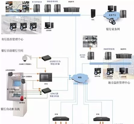目前的各个银行营业网点均配备了视频图像监控系统。传统的各银行营业网点的模拟图像监控体系通常是基于本地监控,即各营业网点各自组建一个完整的监控体系,分别配有监控主机、监视器、硬盘或磁带录像机等设备,网点之间、支行和分行之间无法共享监控图像、防盗报警等信息,一旦网点突发紧急事件,上级单位不能及时全面地掌握有关情况。