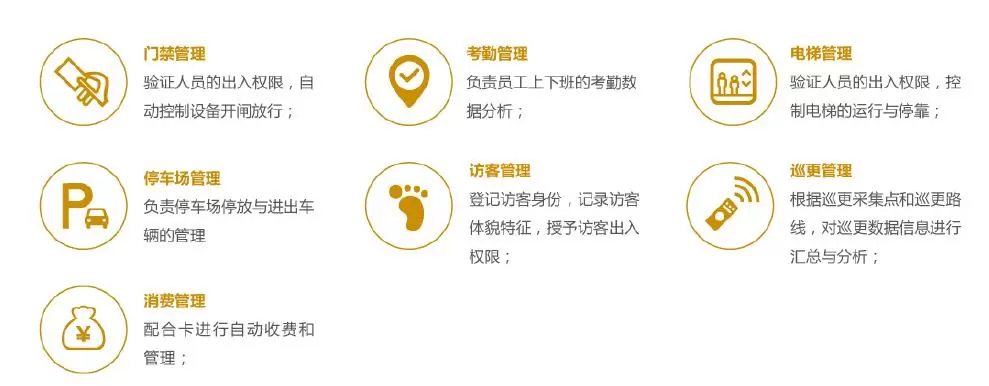 采用一卡通管理系统,集门禁控制、访客管理、梯控管理、考勤管理、消费管理、巡更管理于一体,提供高效的人员管理和权限控制服务。