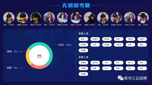 同时,云班牌通过高清摄像头、人脸识别技术,支持多人脸同时秒级识别,保障拥挤考勤精准,并提供多维度、图形化展示。无感知考勤通过预先设置巡航点位,教室内的巡航摄像头可以自动变焦和捕捉教室内每个学生的人脸图像,实现人脸识别考勤,自动识别每位学生的到课情况,同时还可进行课堂行为分析,有效提升课堂的教学质量管理。