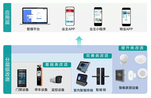提升类改造:在完善类改造的基础上,增加业主家中的智能家居改造。实现社区、家居一站式全场景服务, 提升居民生活品质,满足个性化需求。