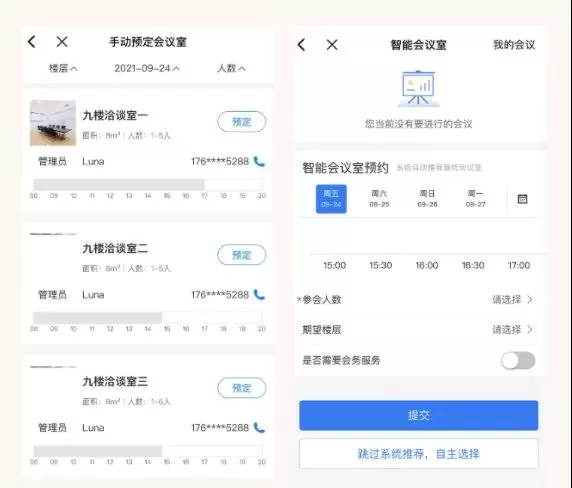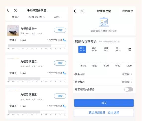 第二步:系统根据当前会议室使用情况为用户智能推送最佳会议室