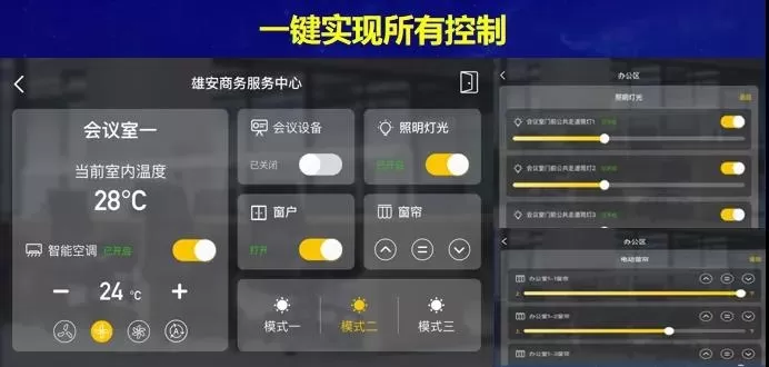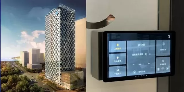 项目亮点:大厦采用无面板设计,通过触摸屏实现控制功能;办公室智慧场景切换,一键切换上班、下班和午休场景,智能会议高效便捷免打扰,办公室和会议室通过便捷的操作体验,为业主办公人员节省了很多的操作时间,并且延续大厦的人文、科技、绿色的整体设计理念。