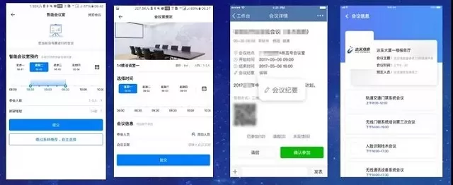 达实会议预约系统,在会议开始前通过手机APP或微信可随时了解会议室占用情况,并预订会议室,组织人员预约会议室(包括会议编号、与会人员、使用时间),预约成功后系统给相关人员发送预约信息。支持与会人员请假、出差等考勤操作。