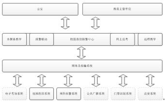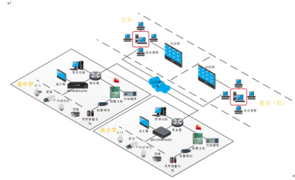 校园安防系统一般由以下子系统组成,根据教育主管单位的业务需要和公安部门治安管理的需要将相关图像信息进行上传。