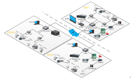 大专院校的报警系统一般防区较多,因此该系统一般独立使用,但需要将各防区与对应的摄像机进行关联并实现报警的联动,报警触发后对应的摄像头图像立即按设置的规则显示在监控中心屏幕上。