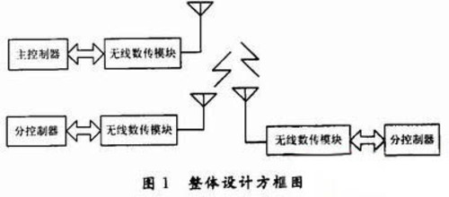 系统结构主要由3部分组成:上位机系统、下位机系统和通信系统。这三部分共同完成了主控制器与分控制器的信息交换,达到楼宇监控的目的。主控制器和分控制器通过无线数字传输模块SRWF进行数据和命令的传输。该通信模型属于一对多的通信模式,其整体方框图如图1所示。
