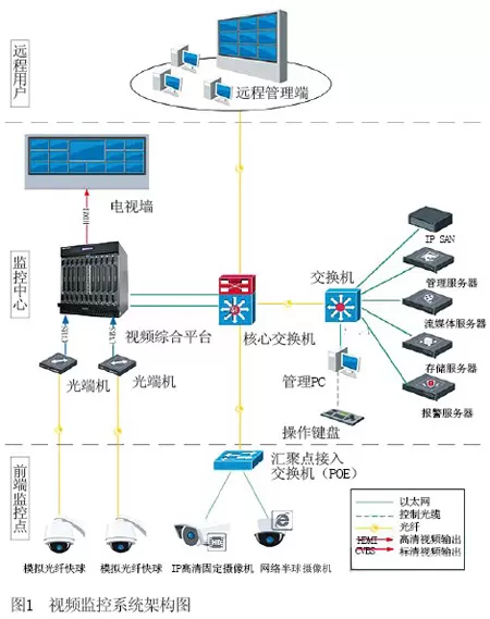 由于视频监控系统的图像质量、系统稳定性和可靠性,直接影响到体育场馆安防系统的技术水平和应用效果,因此,视频监控子系统是体育场馆安防系统建设的重点(图1)。