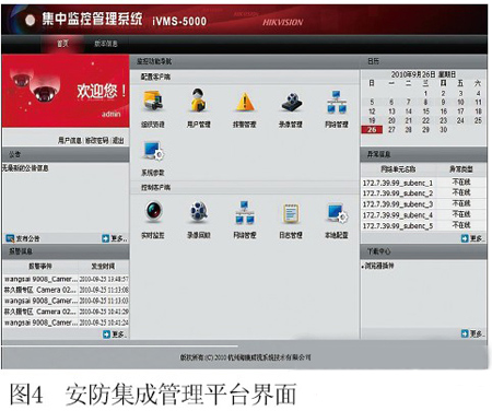 建议采用基于SOA系统架构、集成多种安防子系统的联网平台,它可管理从几十到几千个监控点位规模的监控系统。系统需支持模拟、数字和数模等同时接入的构架模式,并支持防盗报警、智能分析报警、门禁报警和消防报警等各种报警信号源的接入,实现视频监控子系统、出入口控制子系统、报警子系统、智能分析子系统和其他安防系统的集成管理,满足体育场馆安防系统分步或一次性统一部署的要求,实现系统整体投资最优化(图4)。
