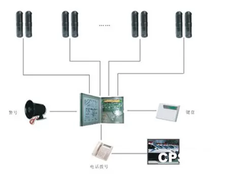 周界防范系统由前端探测器(对射探头、室外红外探头)、报警主机及一些辅助设备(电源、显示地图、警号、探头安装支架)构成。