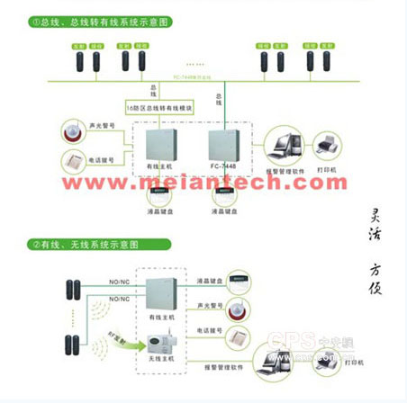 扩展:采用总线多防区采集方式,只用一根2芯总线,就可以采集通讯所有报警点的信息,进入总控中心,节省了可观的线材和管材费用。且有利于日后的维护、检修、增减防区。