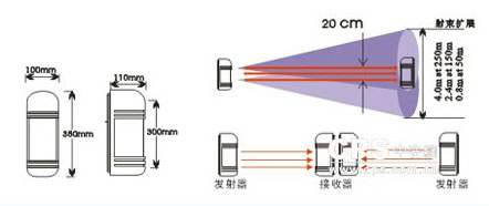 “周界”顾名思义,它就是防范一个重要区域(如机场、军事基地、武器弹药库、监狱等),为了防止非法的入侵和各种破坏活动,传统的防范措施是在这些区域的外围周界处设置一些屏障,如围墙、栅栏、钢丝篱笆网等,并安排人员巡逻。但是人力防范往往受到时间、地理、人员素质和精力等因素的影响,难免出现漏洞和失误。因此需要应用一些先进的周界探测报警系统形成一道人眼看不到的“电子围墙”。主动红外探测器是最为常见的周界报警探测器。