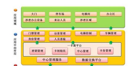 一卡通系统能实现多种不同管理功能。例如:门禁、考勤、就餐、消费、停车场出入,巡逻签到、会议签到,电梯使用等多种功能。这些功能可以使用来自不同厂家的设备,例如:门禁考勤使用甲厂家的产品,消费使用乙厂家的产品,停车场管理使用丙厂家的产品;而企业园区一卡通系统则具有更安全的保障措施。