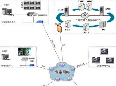 网吧监控是在技术上对网吧进行严格管理的有效手段。网吧监控包括网络内容监控和网吧环境监控。其中后者作为视频监控系统,可以有效对网吧的经营情况进行管理,包括营业时间、事件取证、报警上传、监督未成年人进入等。