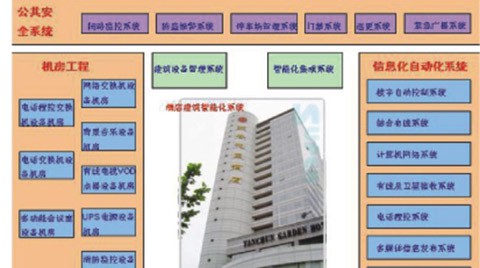 以往,在国内也有一些大厦采用警视以及办公自动化的系统,但这些都是独立的,相互之间脱节,造成各子系统之间的硬件设备以及各种资源大量重复冗余、操作和管理人员还要熟悉和掌握各个厂家的技术,造成系统建设、技术培训及维护的高额投资和系统效率低下。本系统通过二次集成开发,可以在一个中央监控室内,对各个系统进行综合管理,做到集中监控和集中管理。这样一方面可以提高管理和服务的效率,节省人力物力;另一方面,各职能部门的工作站通过网络实施统一的监控和管理,实施全局事件和事物处理,使酒店管理更趋现代化,同时可以进一步降低酒店的运作和管理的费用,提高酒店的综合管理能力。