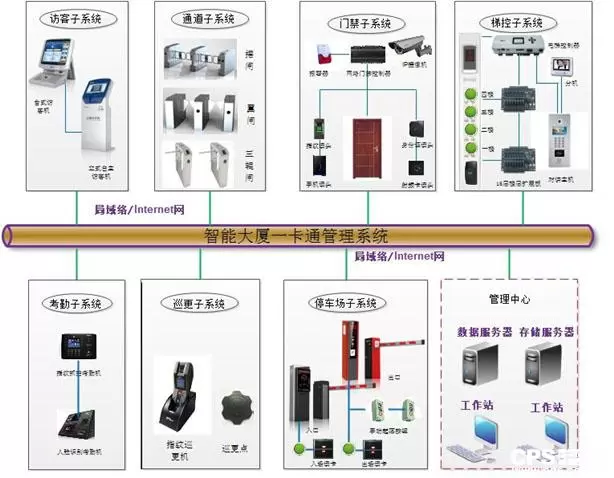 为解决智能大厦人员车辆出人频繁、管理混乱的现状,本方案以中控自主研发的安防管理平台为载体,前端接入访客、通道、梯控、门禁、停车场、巡更、考勤等系统设备,实现一卡通应用,后端通过统一数据库进行数据存储。