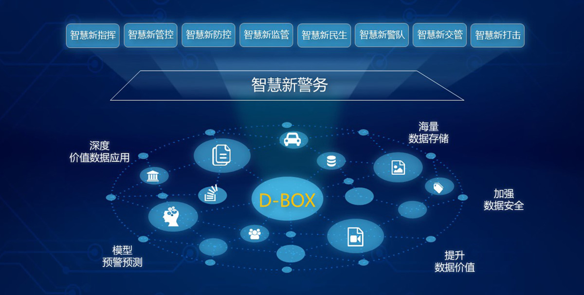 D-BOX具有海量的蓝光存储能力、超大规模数据分析能力,迎合当前“大数据推动智慧新警务”的形势,助力智慧新警务,使警务工作“管理更智慧”、“决策更精准”、“服务更便捷”、“调度更智能”、“联合更紧密”、“革新更合理”,为智慧新警务保驾护航。