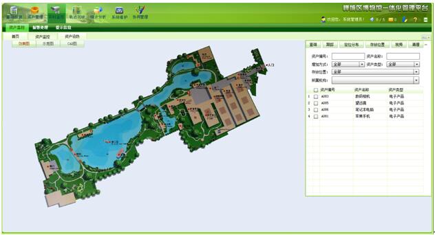 资产管理主要指对区域内的资产进行状态监控、跟踪定位、防盗报警、资产盘点以及资产整体分布、管理等应用功能。
