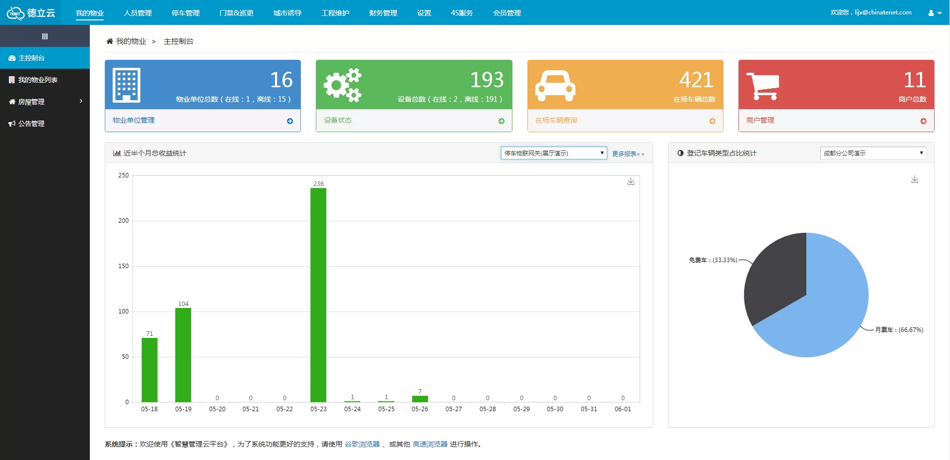 车辆的增多带来的是停车问题的加剧,以前都是以增加停车场的方式来解决停车问题,而随着停车场越来越大,越来越多,新问题也出现了,多个停车场架构管理太过麻烦,费用也高。德立云停车平台打破单个停车场系统信息孤岛现状,实现多个停车场在同一平台上集中统一管理。