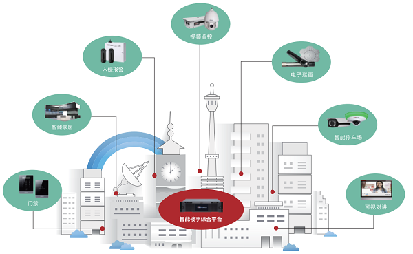 大华住宅小区智能化融合解决方案基于TCP/IP网络,通过智能楼宇统一平台融合可视对讲、视频监控、报警、门禁、电子巡更、出入口管控、智能停车场、显示与控制、智能家居九大系统,为智能小区建设提供一体化的整体解决方案。