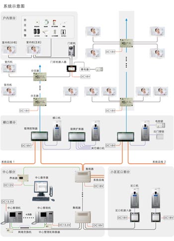 系统通过总线组网,支持多级总线,具有极好的灵活性和扩展性,适合高、多层别墅等现代住宅小区,是现代智能小区的首选产品。