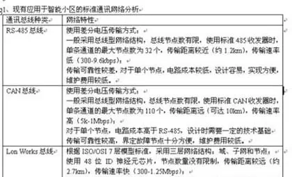 1、现有应用于智能小区的标准通讯网络分析