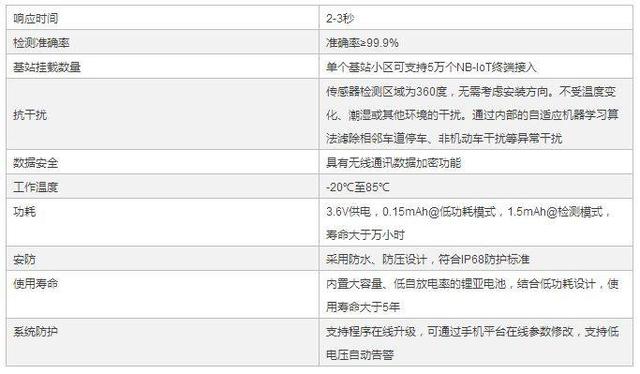 此方案采用运营商(电信、联通、移动)NB-IoT窄带物联网网络,兼容NB-IoT和LTECAT-M1,在基站网络覆盖范围内均能实现联网通信,无需架设转发网关。NB-IOT地磁的具体细节如下表格: