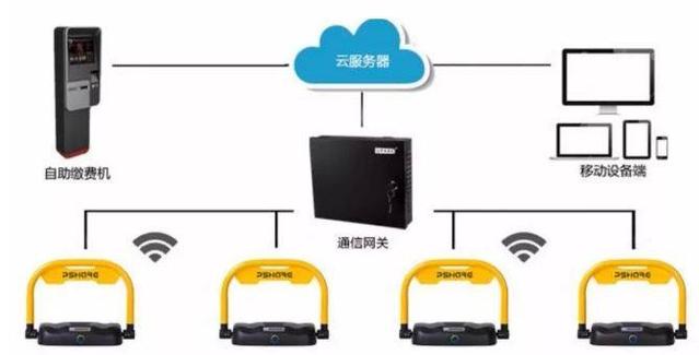 与前两个方案不同的是,本方案把车库地磁更换成了智能车位锁,采用ZigBee通信模式。