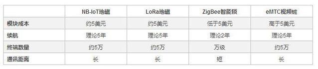 上表中的数据表明eMTC成本较高,ZigBee通讯距离较短。综合看来,NB-IoT地磁和LoRa地磁方案是大规模应用的主流方向。