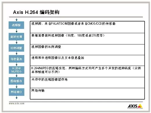 在安讯士的网络视频产品(包含视频编码器和网络摄像机)中均嵌入了安讯士自行研发的网络视频处理芯片ARTPEC系列。所有的视频压缩、编码和码流生成均由该芯片处理完成,所产生的视频流再通过网络传输接口模块通过网络发送至相应的位置或用户。