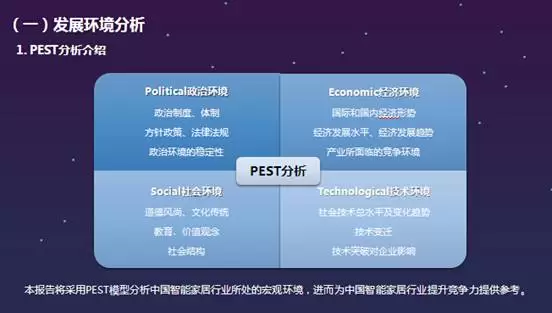 本报告将采用该模型进行发展环境的相关分析,通过对中国智能家居行业所处的宏观竞争环境的剖析,为中国智能家居行业提升自身竞争力提供相应的参考。