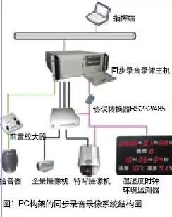 如图1所示,结构虽然简单,但可以实现同步录音录像必须的具备的功能;双光盘直录功能、画中画功能(同步录音录像主机实现数字画中画)、温湿度时钟叠加功能、云台镜头控制、音视频文字交流等即时通讯、基于卷宗的录像文件检搜索、实时传输图像必要的加密措施、系统存储的原始数据文件全程加密,具有不可修改性、系统存储过程应具有重点标记功能、播放支持重点标记播放。也可以实现一下实用的扩展功能,如流媒体转发功能、录音录像资料后期烧录、电子白板电子证据交互、讯(询)问预约功能管理、电子地图远程控制、时钟同步、音视频文件转录到模拟磁带、录像资料远程下载、远程回放、电子笔录、笔录与视频粘链等功能。PC+音视频压缩卡组建硬盘录像机为核心设备,运行Windows操作系统,软件开发商比较容易开发出完全符合《工作流程》和《建设规范》软件,要求的各项技术指标都可以使用成熟的技术保障。至于为什么不采用嵌入式硬盘主机来组建,在此一起来分析一下嵌入式硬盘录像机的特点。