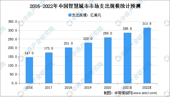 数据显示,截至2020年,中国智慧城市市场支出规模将达到259亿美元,较2019年同比增长12.7%,高于全球平均水平,为仅次于美国的支出第二大的国家。中国智慧城市市场的三大热点投资项目依次为可持续基础设施、数据驱动治理以及数字化管理,预计2022年我国中国智慧城市市场支出规模将达313.8亿美元。